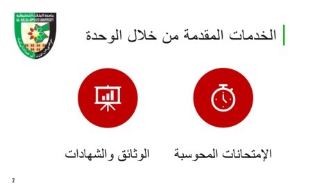 |الخدمات المقدمة من خلال الوحدة الإمتحانات المحوسبة الوثائق والشهادات 2